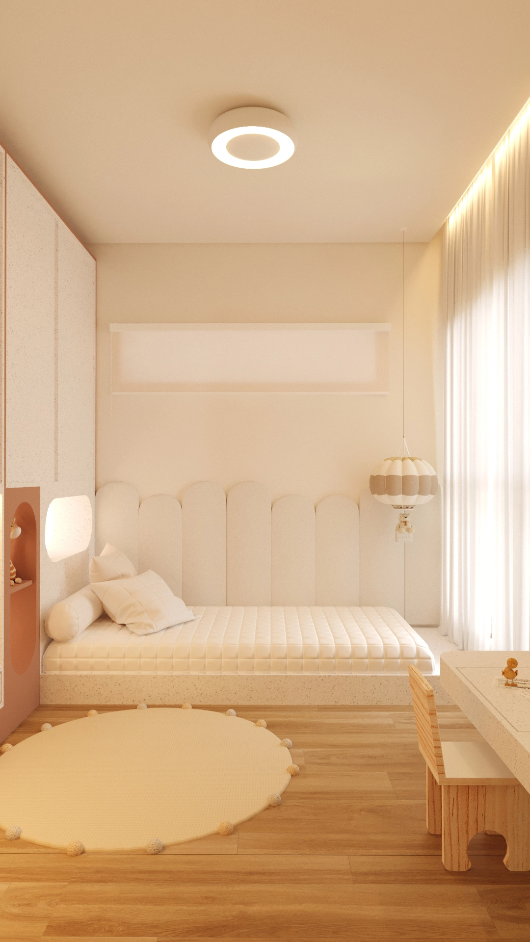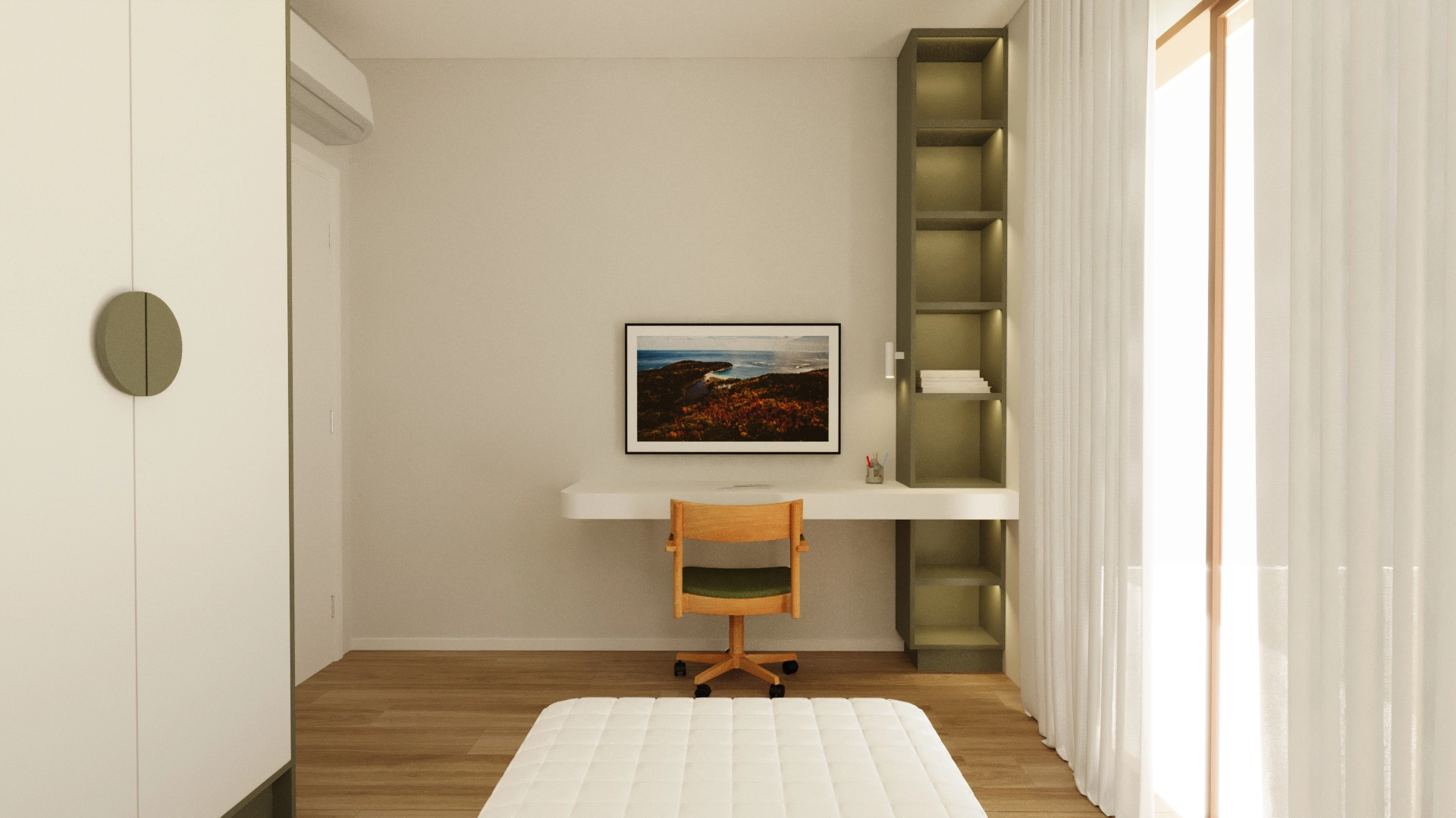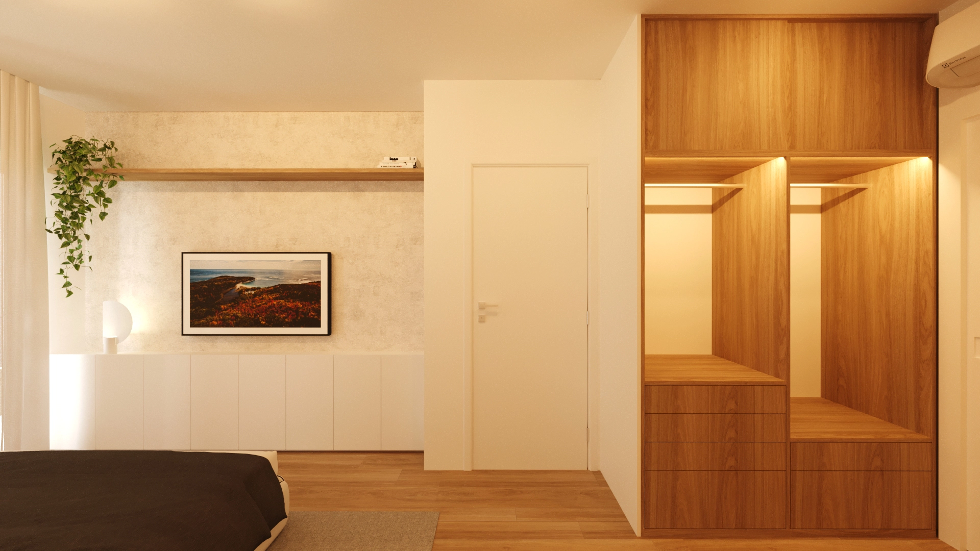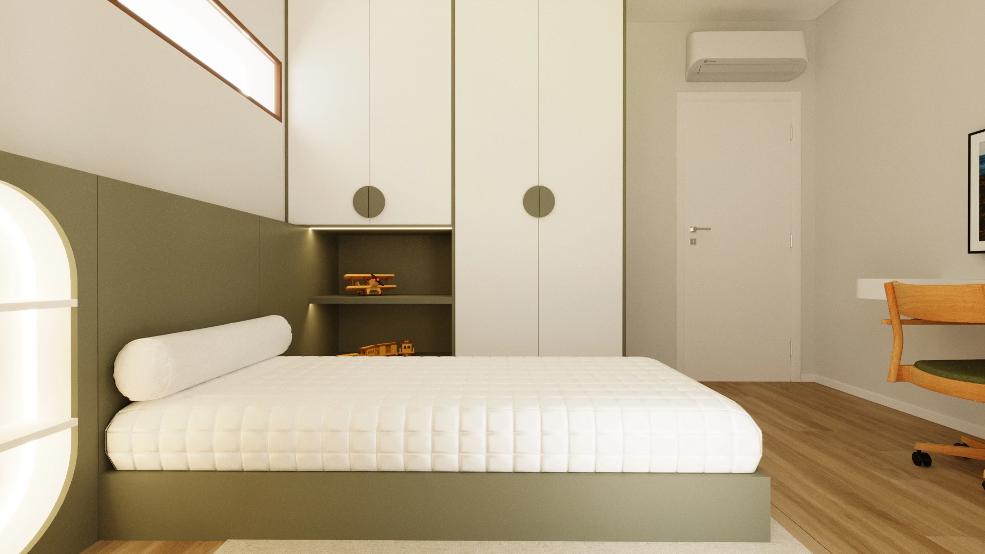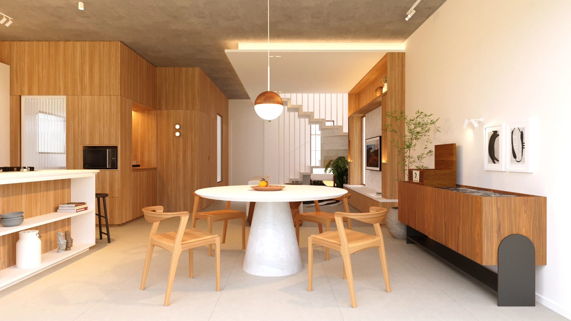 A proposta parte da premissa de criar uma atmosfera acolhedora, com ambientes integrados e fluidos que favoreçam o convívio e o bem-estar cotidiano. O estar, jantar e cozinha compartilham o mesmo plano, conectados visualmente e funcionalmente, favorecendo a convivência familiar e a sensação de amplitude.