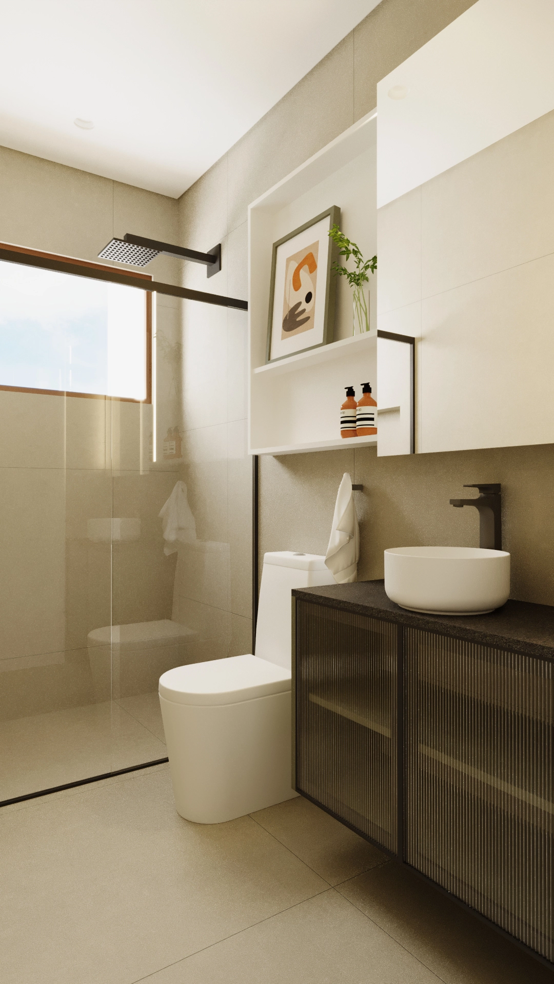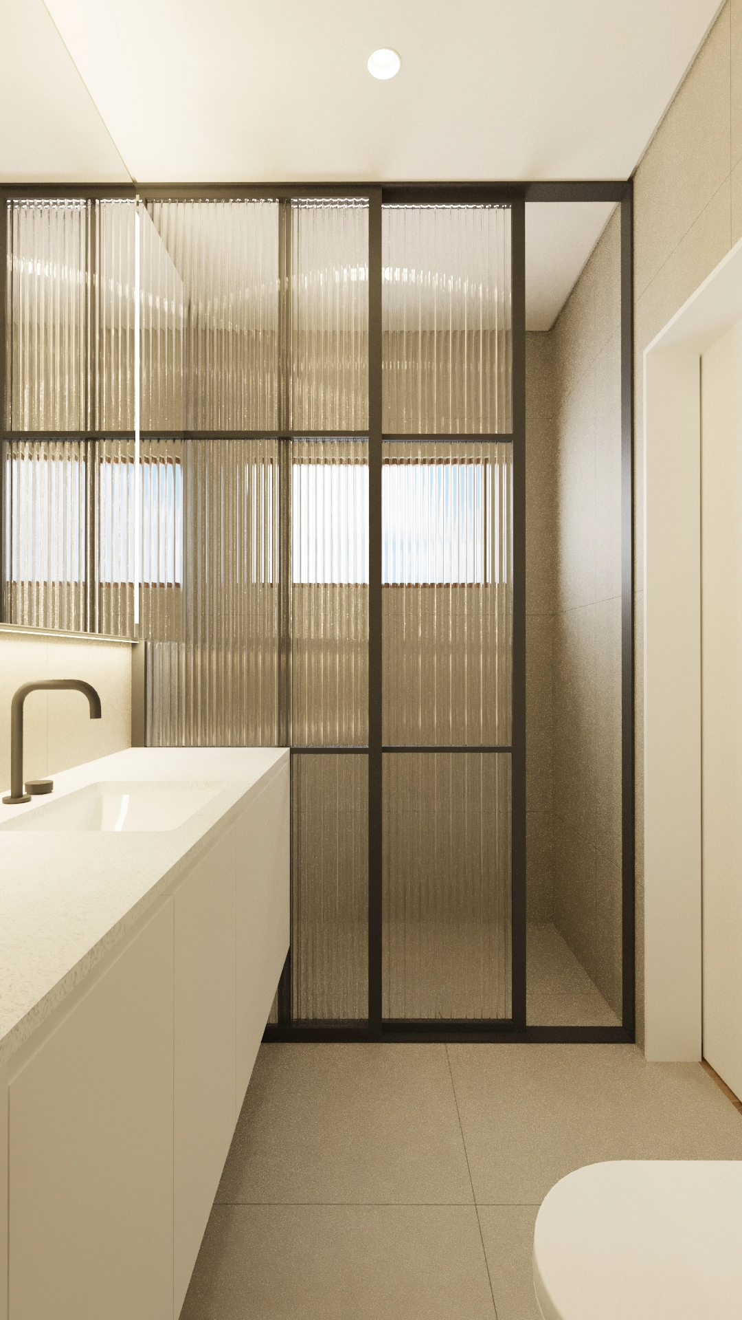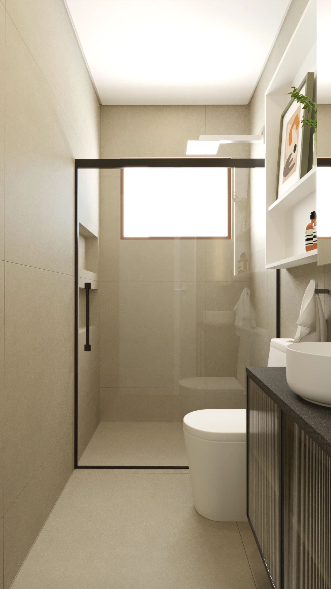 Para o banheiro, criamos duas opções de cores dos metais e detalhes.