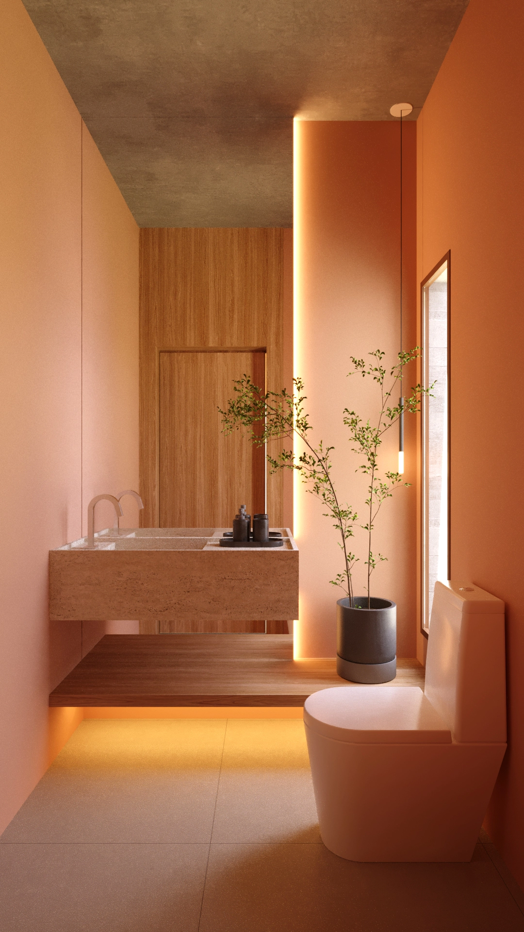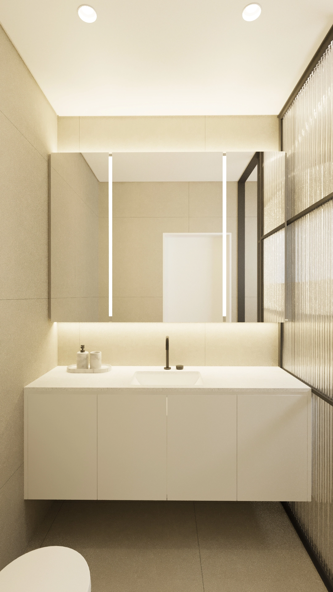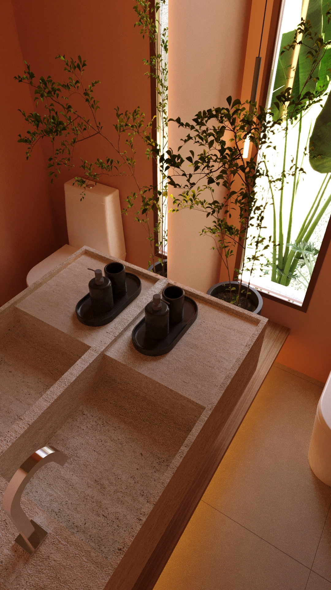 Para o banheiro, criamos duas opções de cores dos metais e detalhes.
