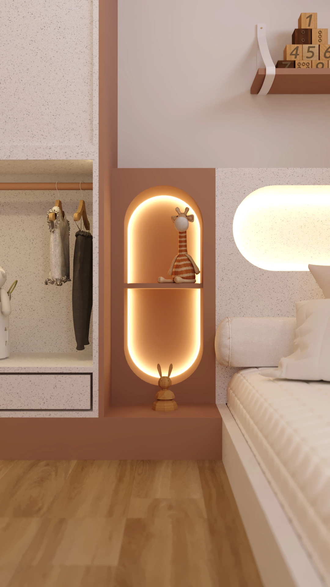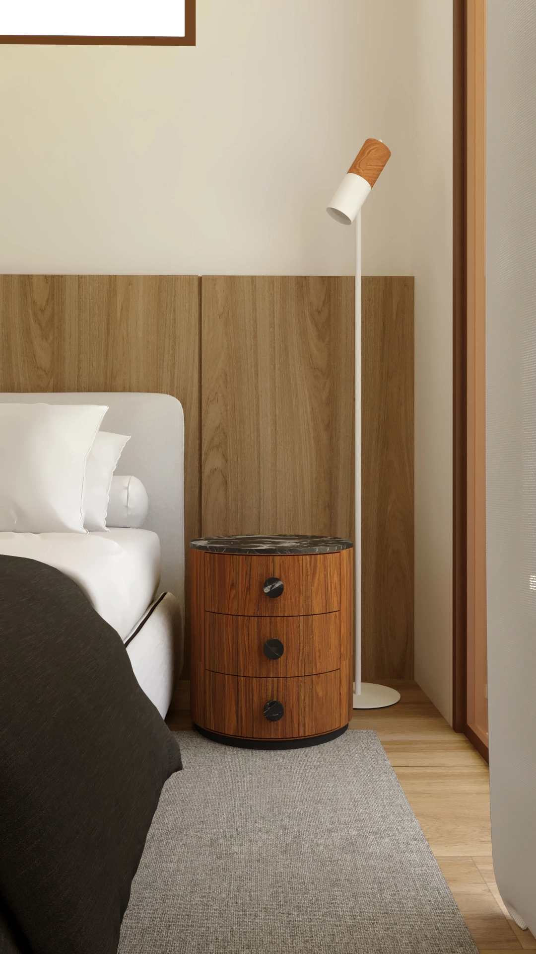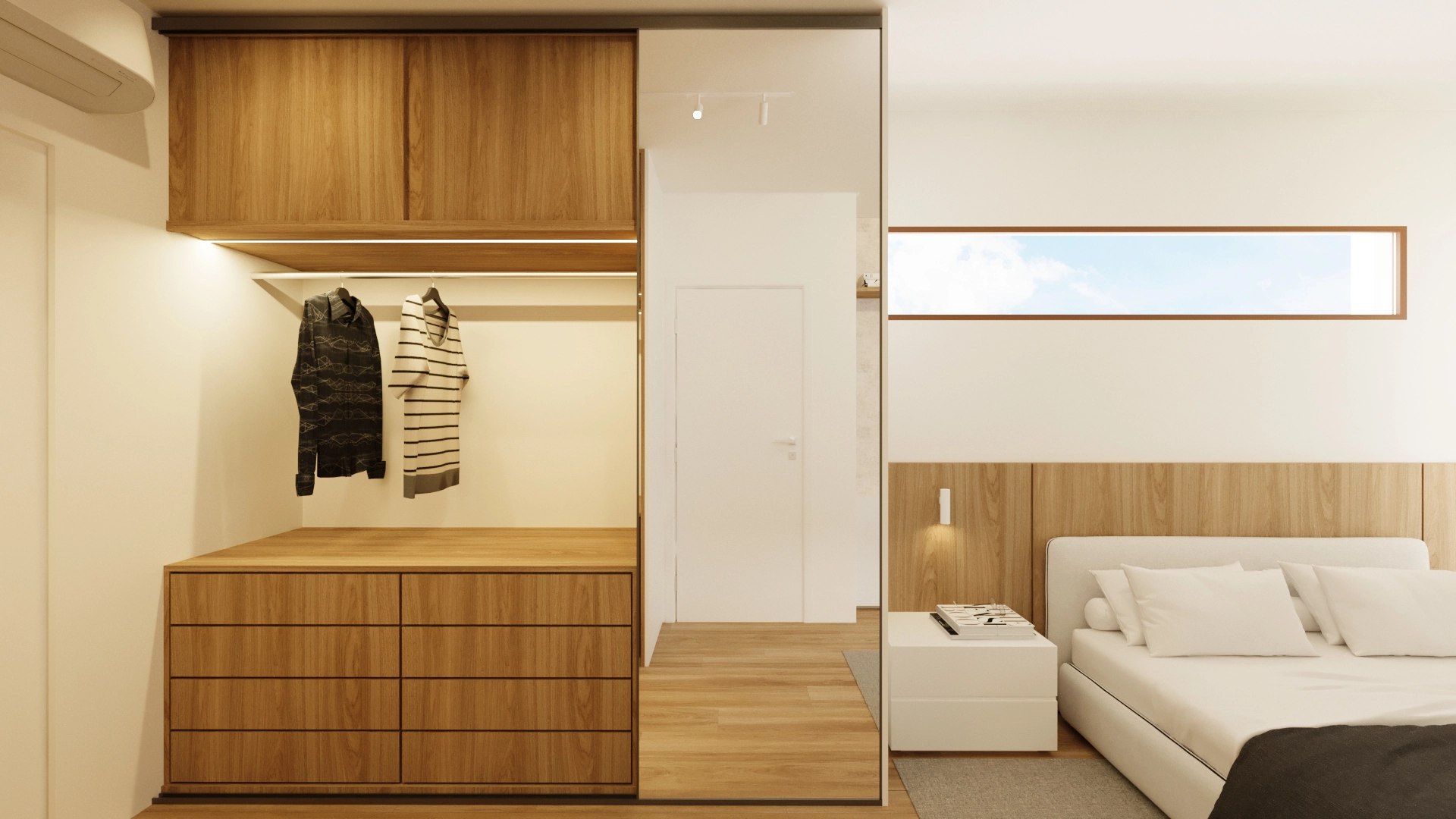 Contrastes visuais, cantos arredondados, texturas e materialidades foram pensados para guiar cada passo com segurança, autonomia e liberdade, uma vez que o principal desafio era projetar esses ambientes para uma pessoa com baixa visão. Apesar de ser um imóvel compacto, criamos um layout amplo e muito confortável.