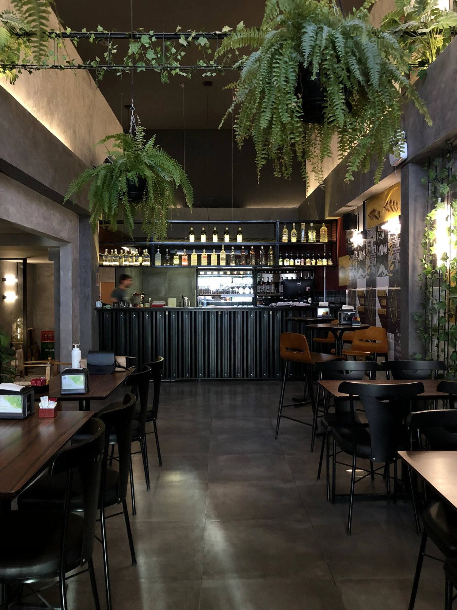 Estilo industrial em um ambiente aconchegante, inspirado na cultura da cidade, trazendo a relação da marca com o espaço físico. A atmosfera traduz a identidade autêntica, descontraída e criativa da Desterro, através de cores, plantas e materialidades simples.