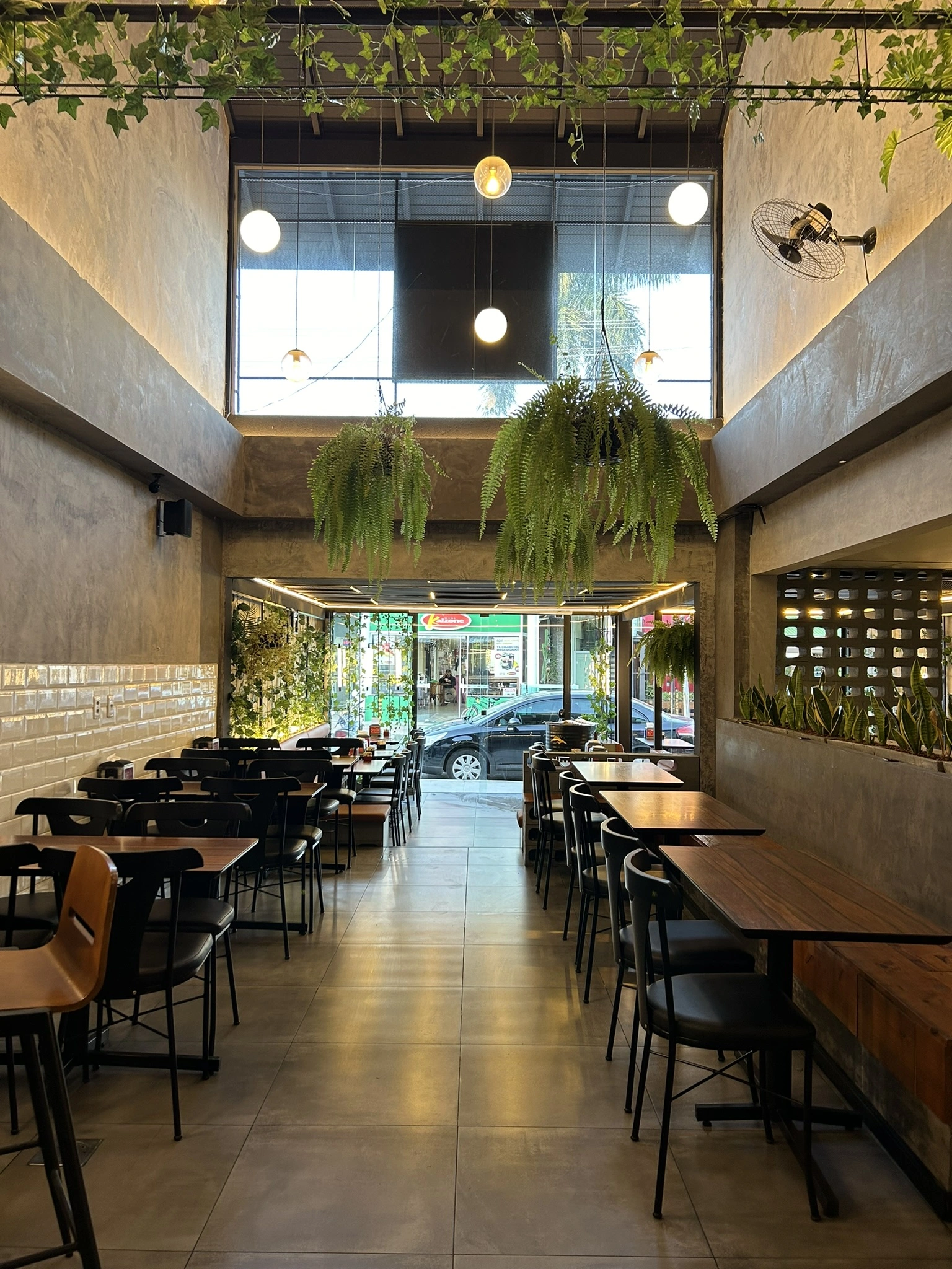 Com 270m², o projeto reforça a identidade urbana e criativa da Desterro Hamburgueria, traduzindo os valores da marca por meio do espaço físico, com estilo industrial, uso de materiais artesanais e soluções inteligentes que unem criatividade e funcionalidade.