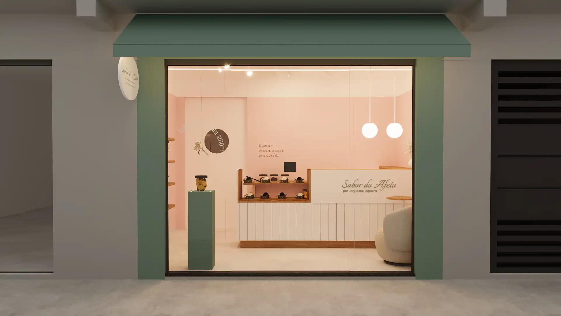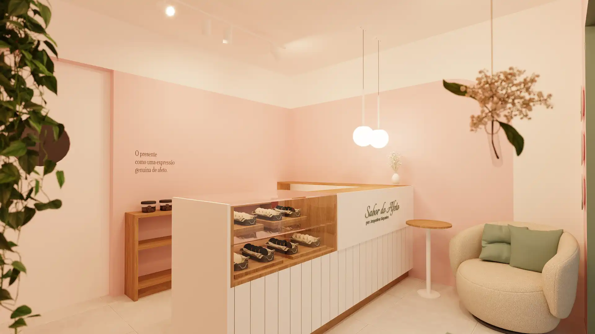 Nosso desafio foi traduzir essa essência da marca Sabor do Afeto em um ambiente que acolhesse clientes e comunicasse o propósito de forma sutil e encantadora.